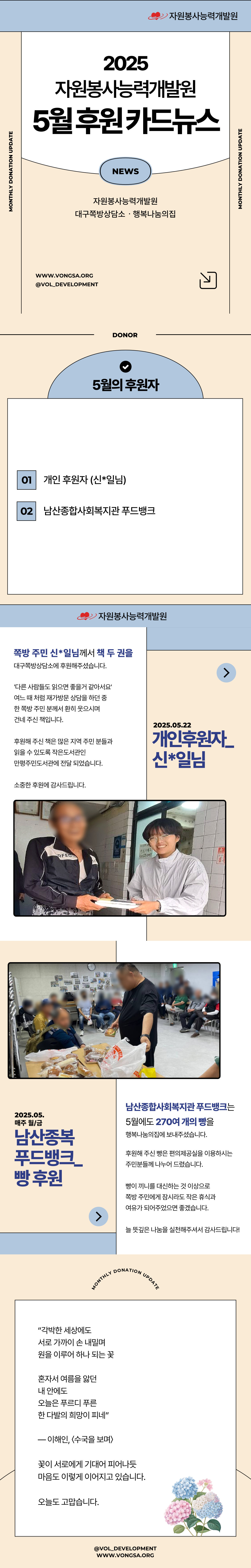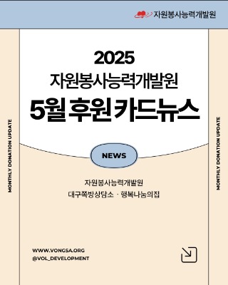 [자원봉사능력개발원] 5월 후원소식 (2025) | 2025-06-20 | |||