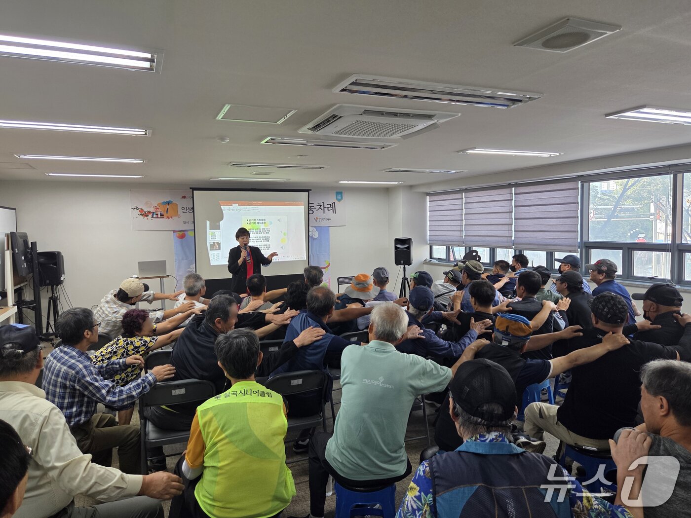 (대구=뉴스1) 이성덕 기자 = 심리치료프로그램 사회자 주위에 옹기종기 모여 앉은 대구 쪽방촌 주민들이 서로 어깨를 주무르며 박장대소를 했다.
